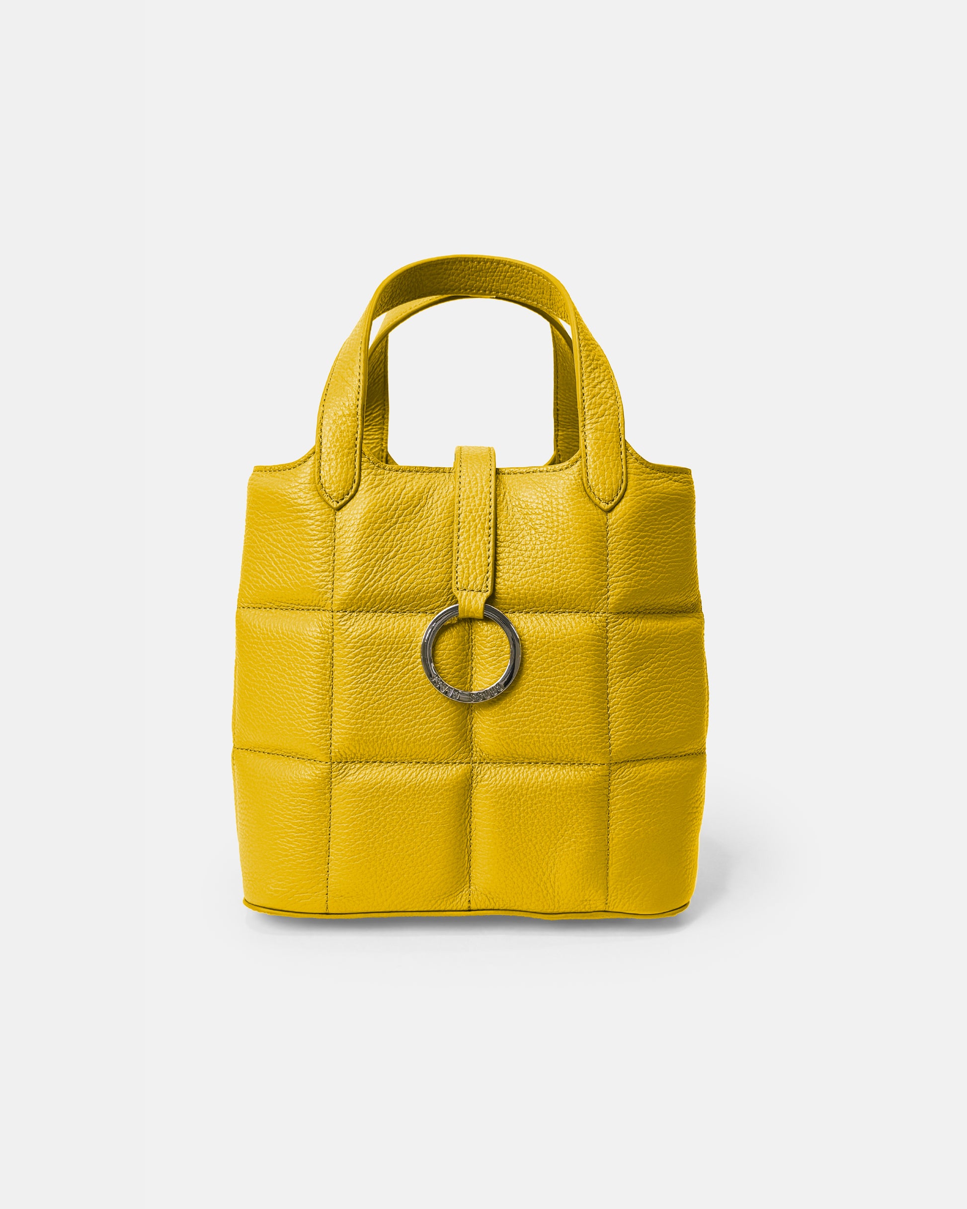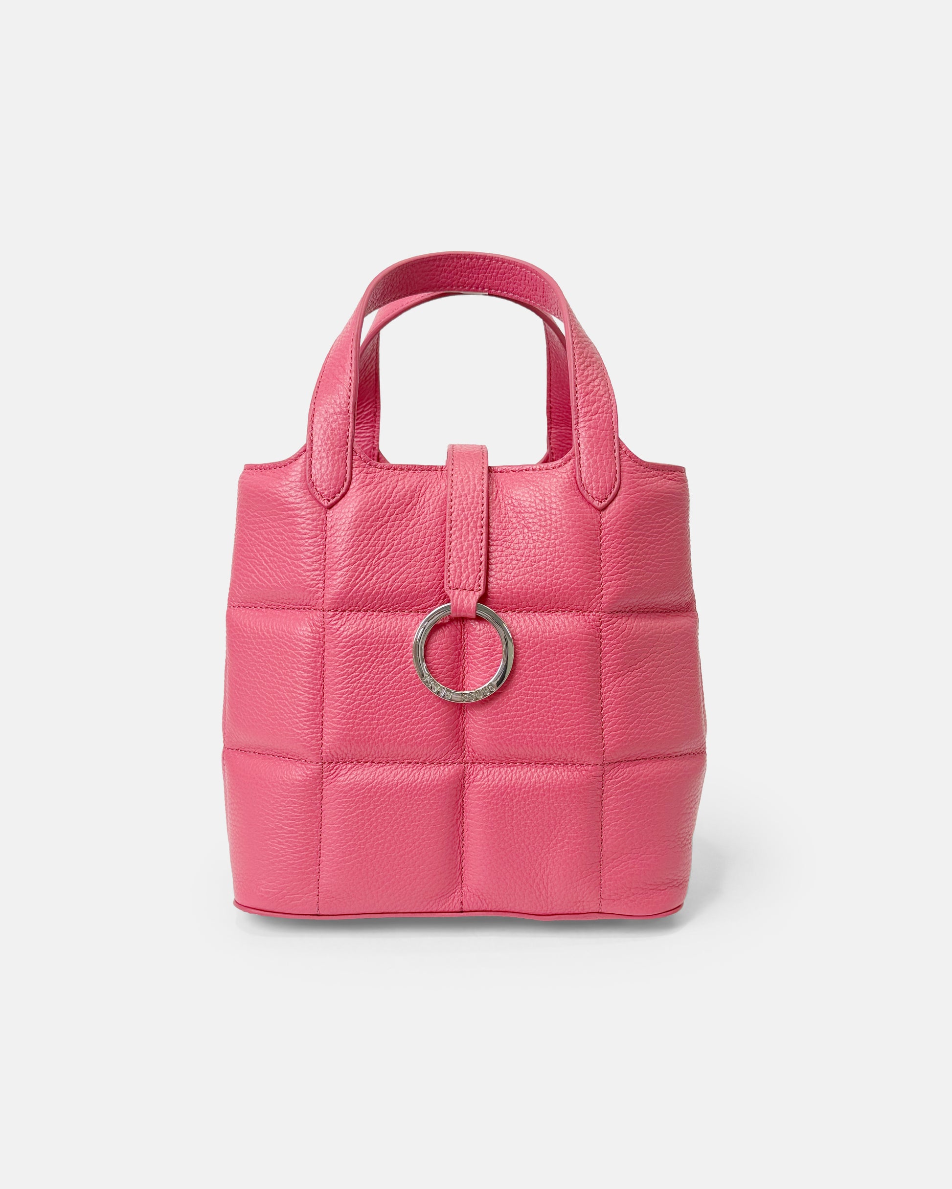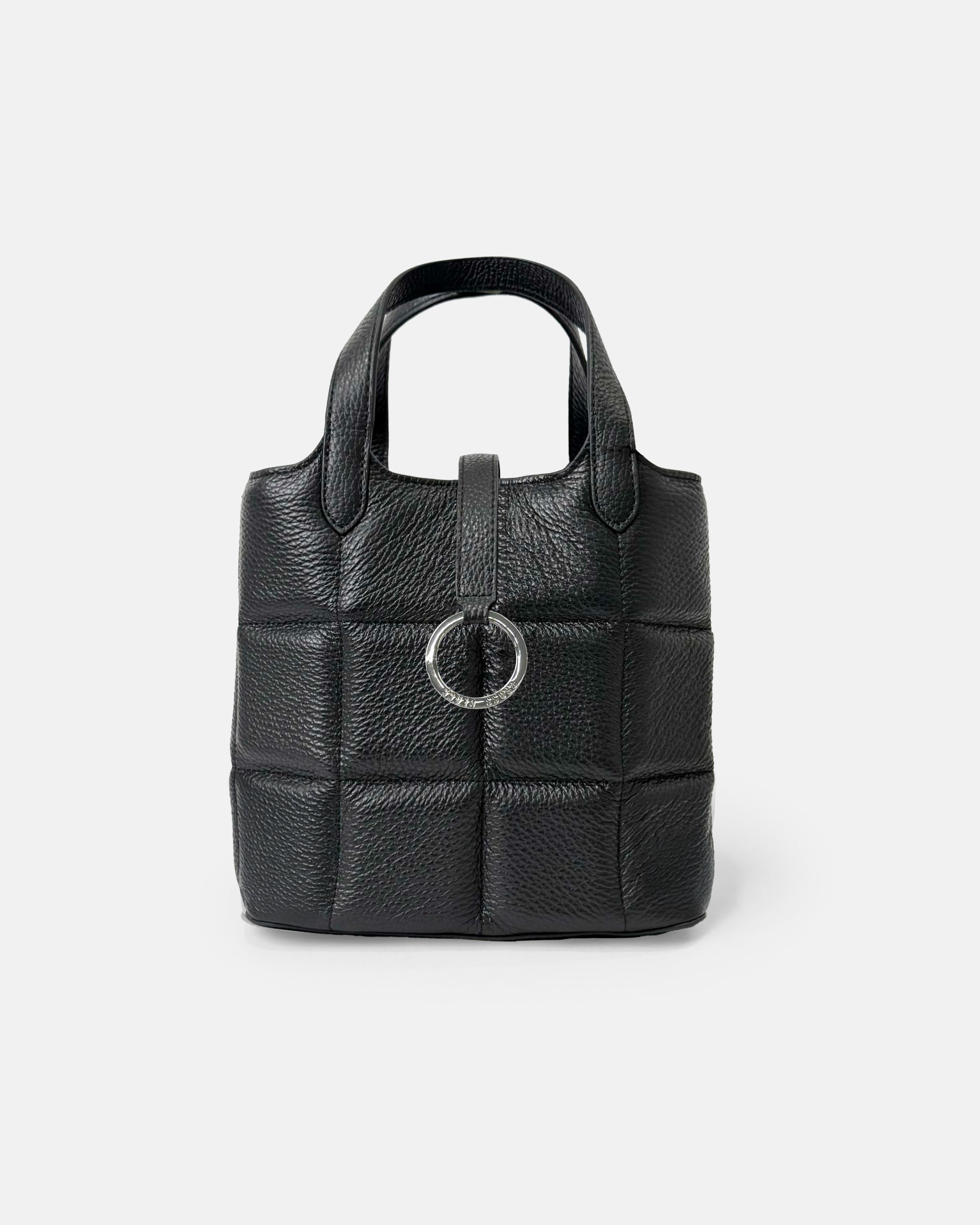 This chic and compact box-shaped tote bag is as practical as it is stylish. Featuring elegant cross quilting and an original logo ring as a striking centerpiece, it’s designed to elevate your everyday wardrobe. Despite its compact design, this bag offers a surprisingly large capacity, making it ideal for carrying all your essentials.