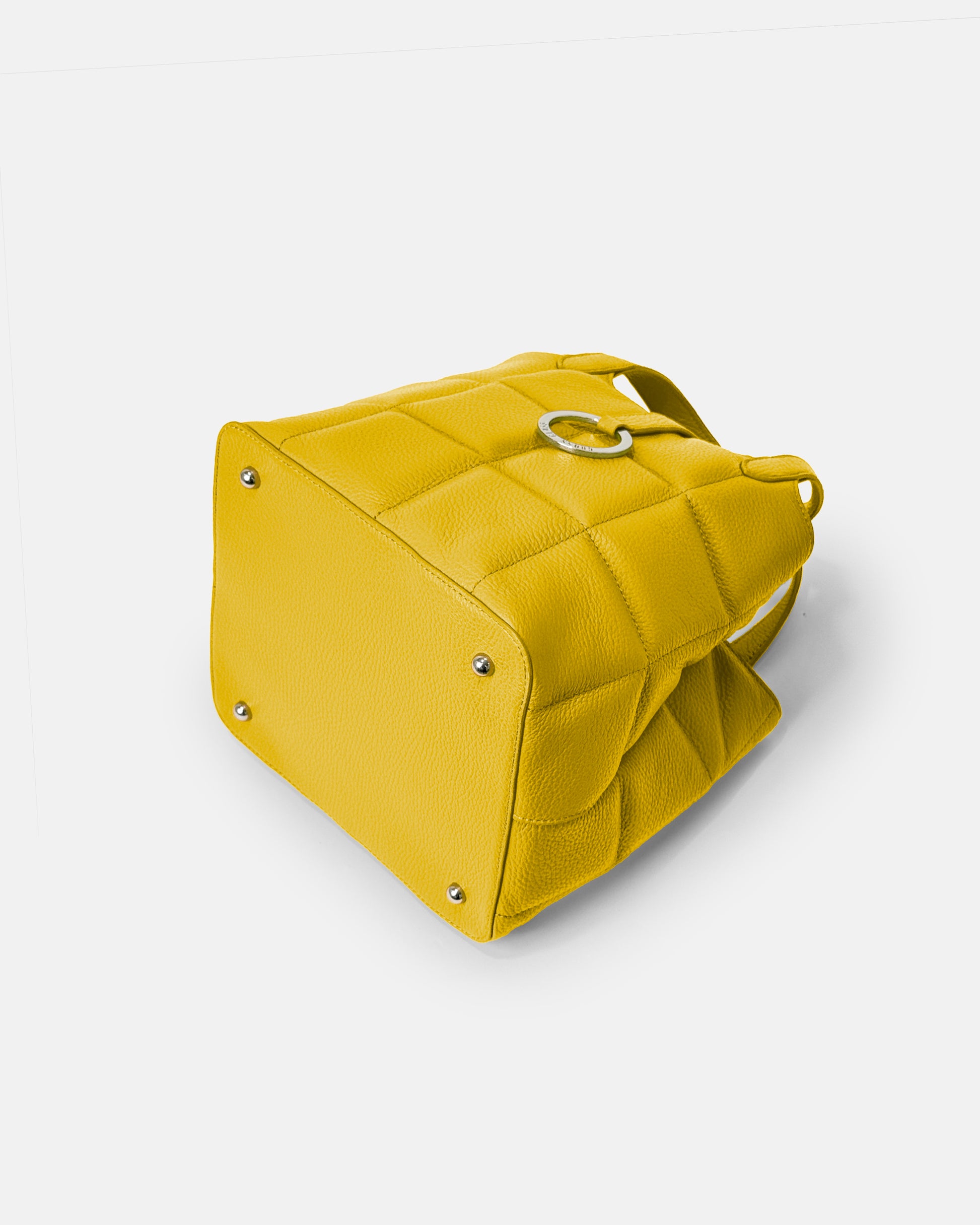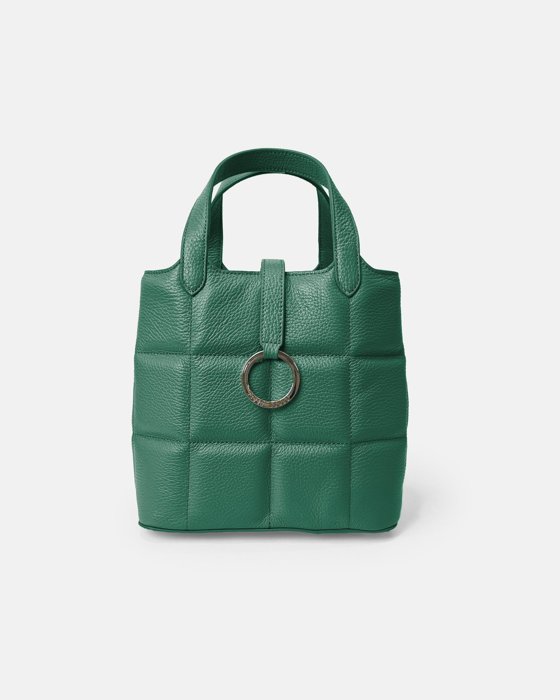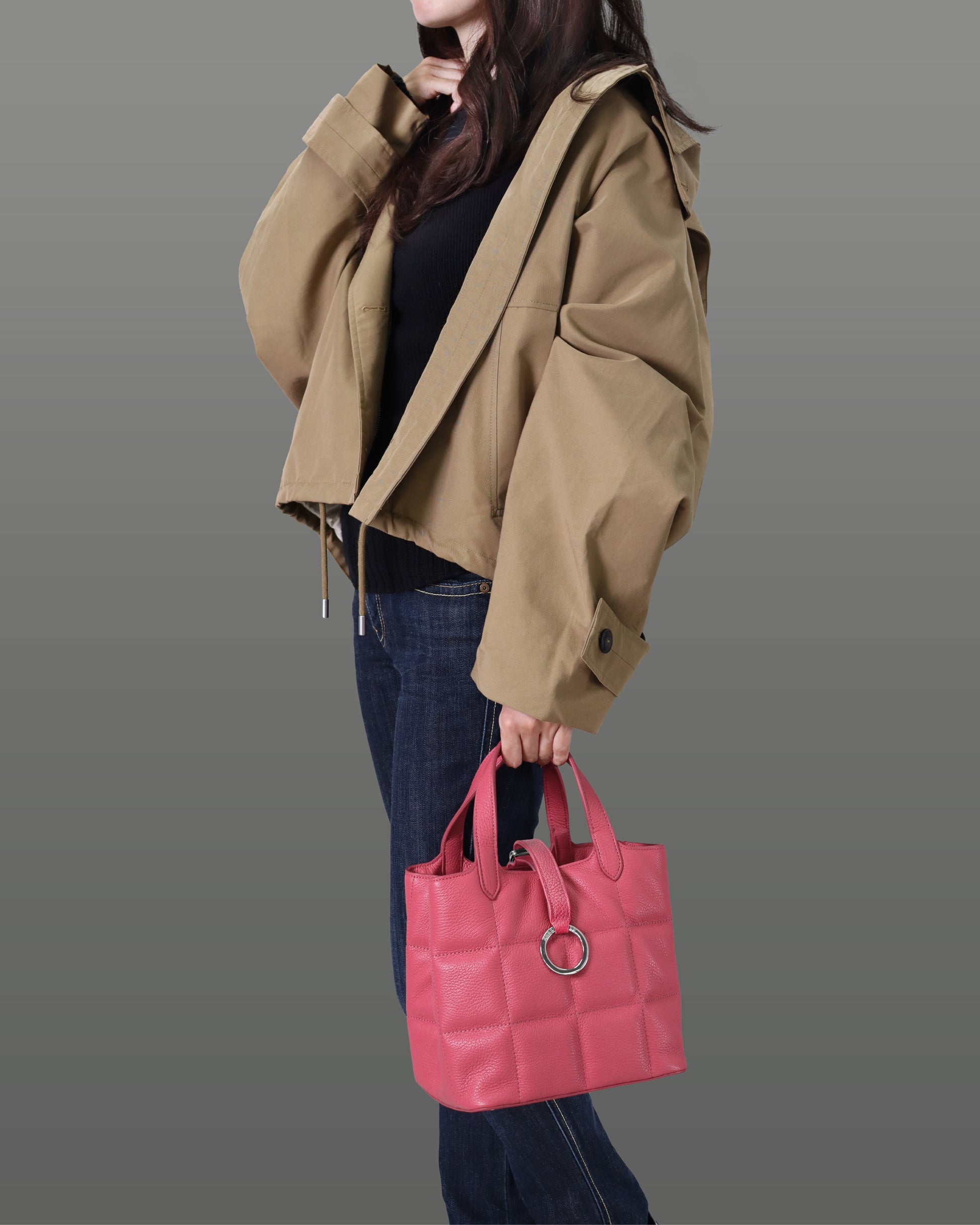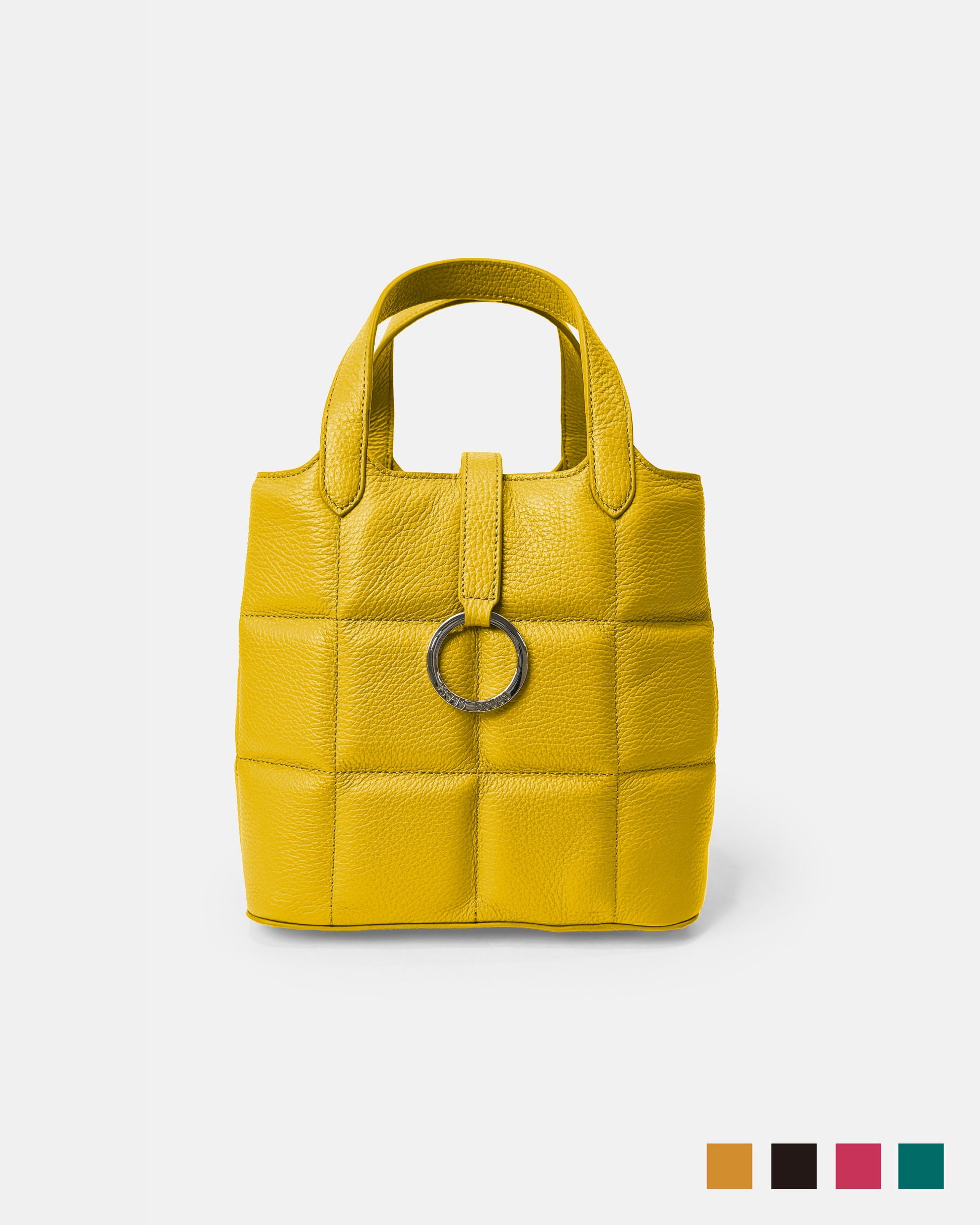 This chic and compact box-shaped tote bag is as practical as it is stylish. Featuring elegant cross quilting and an original logo ring as a striking centerpiece, it’s designed to elevate your everyday wardrobe. Despite its compact design, this bag offers a surprisingly large capacity, making it ideal for carrying all your essentials.
