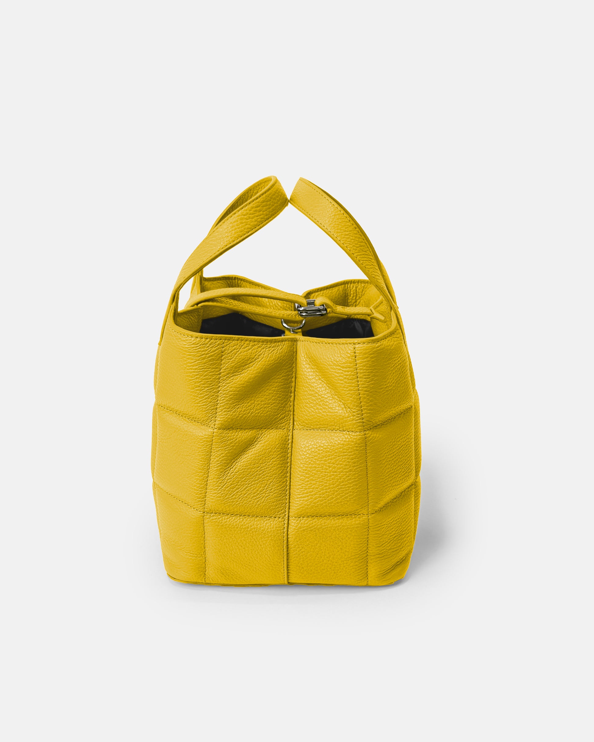 Cross Quilted Box-Shaped Tote Bag