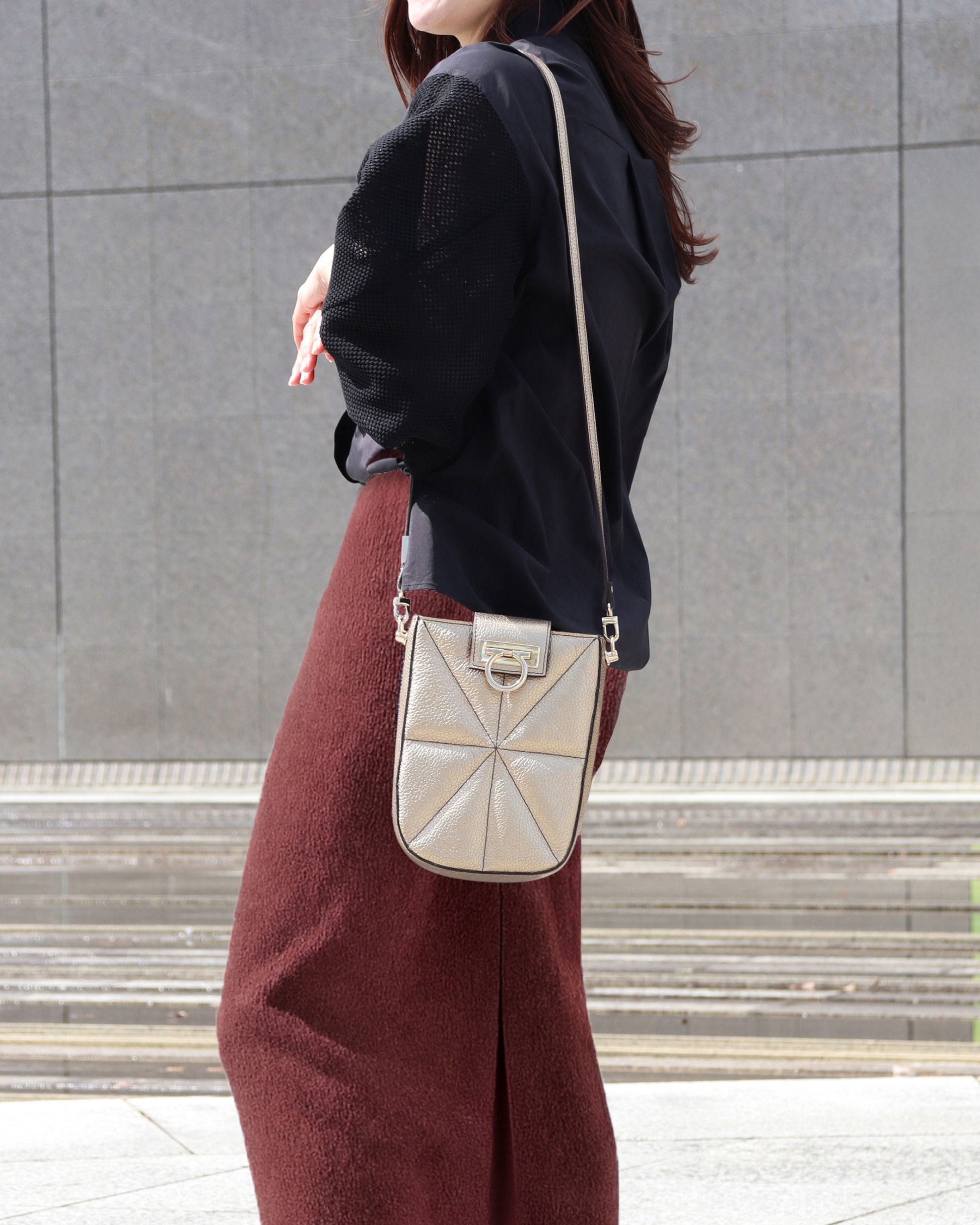The design, which uses metallic Italian leather, adds an accent to your outfit and is an all-purpose item that can be worn in any situation.