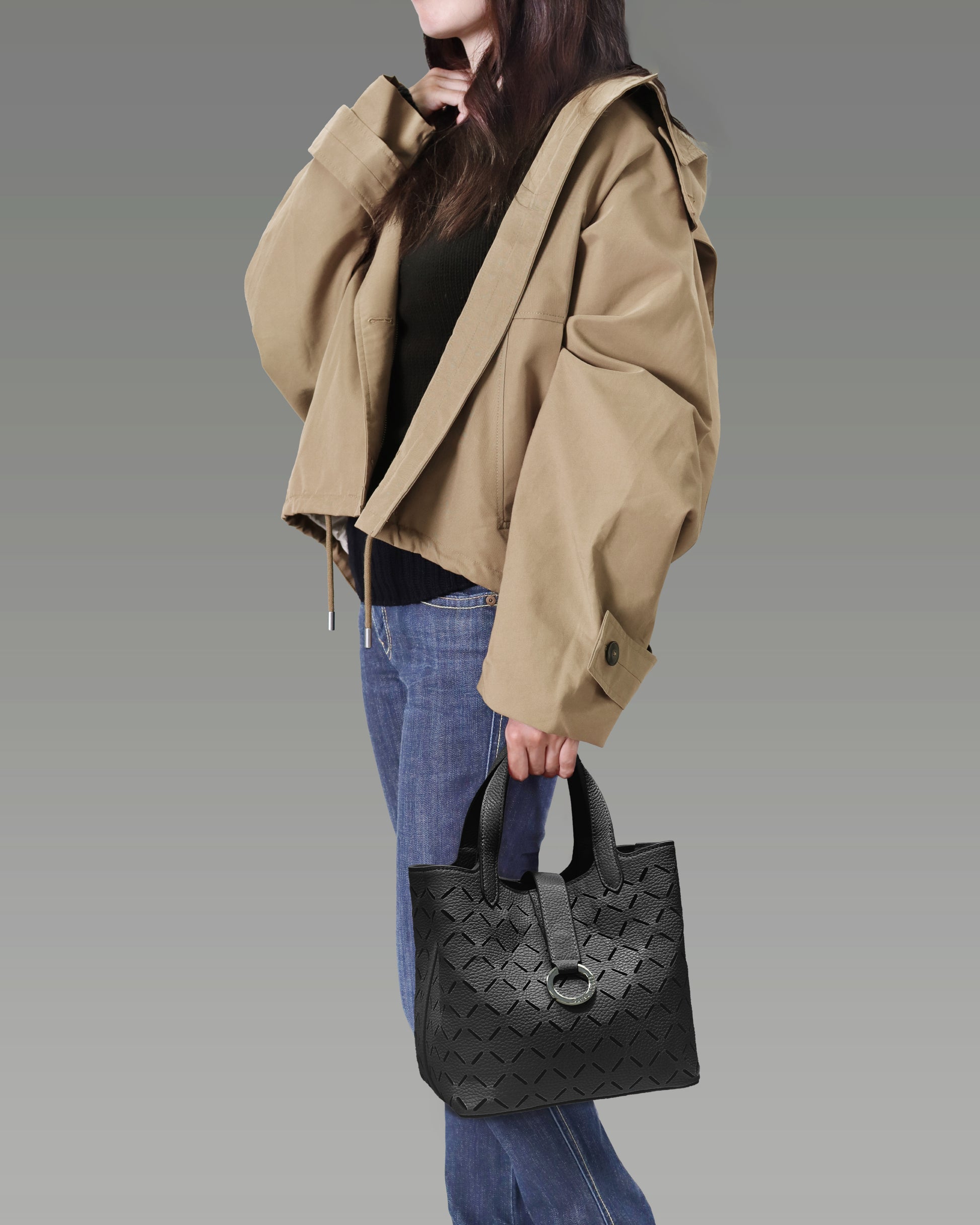 コンパクトでありながら大容量を誇るBOX型トートバッグで、実用性とスタイルを両立。