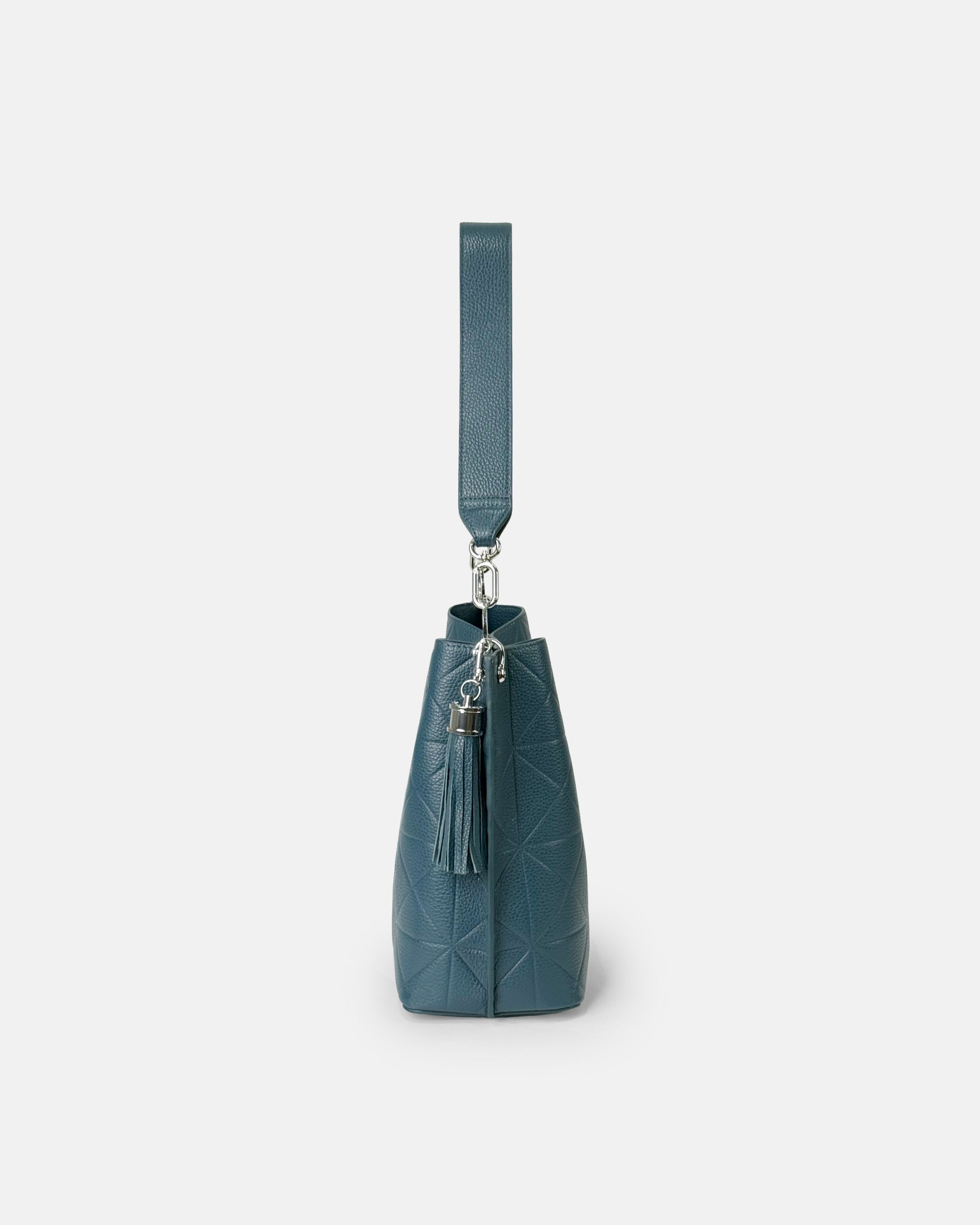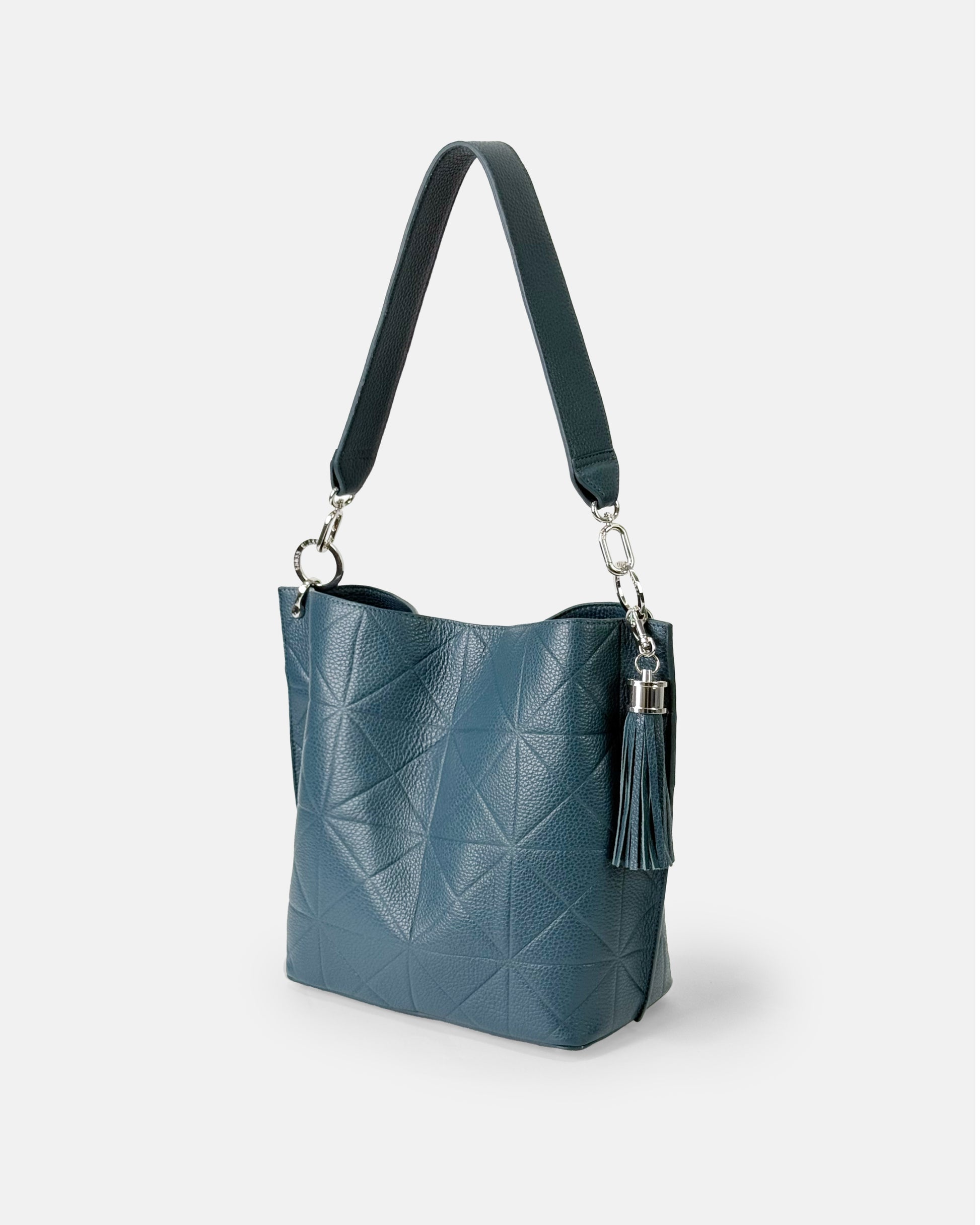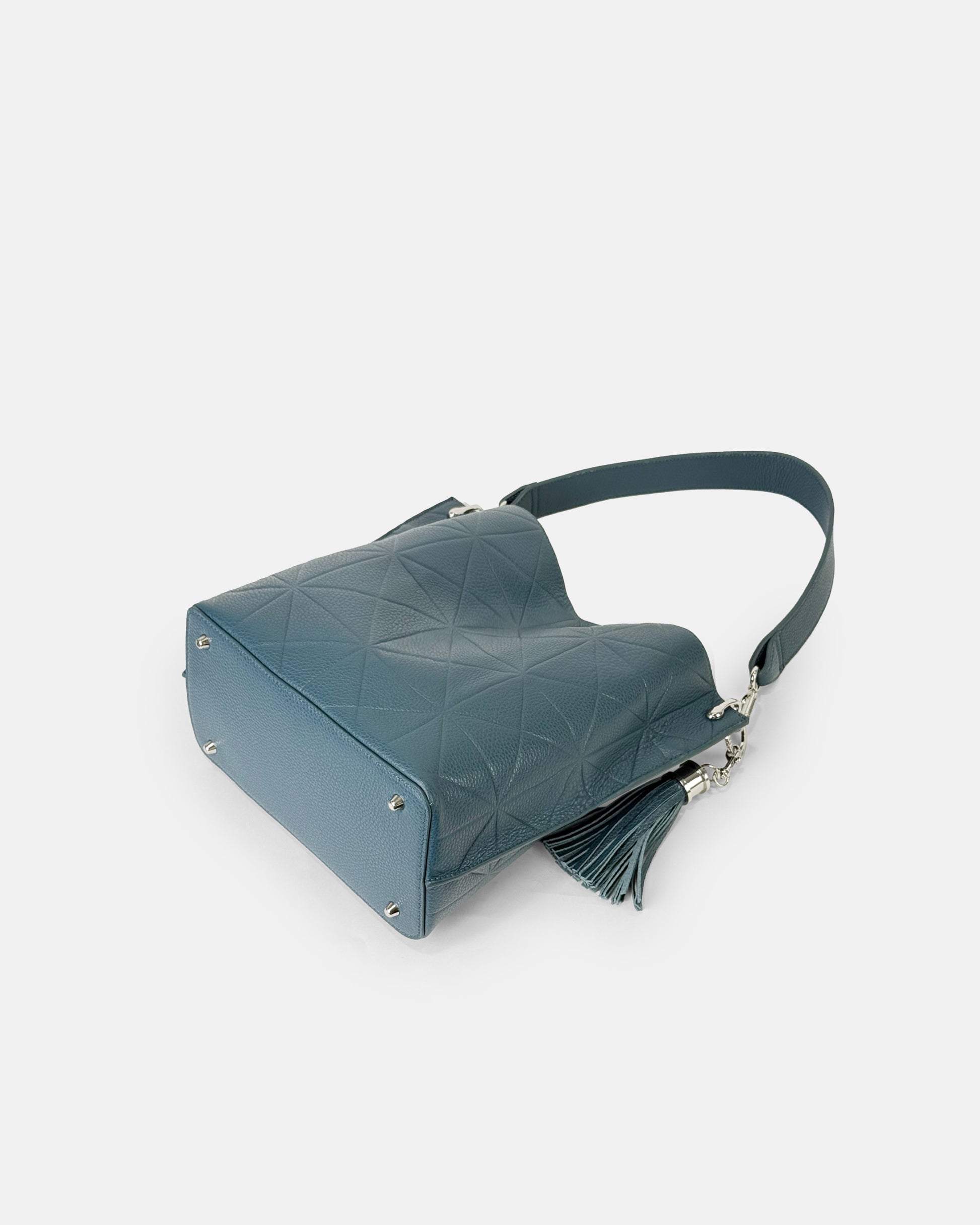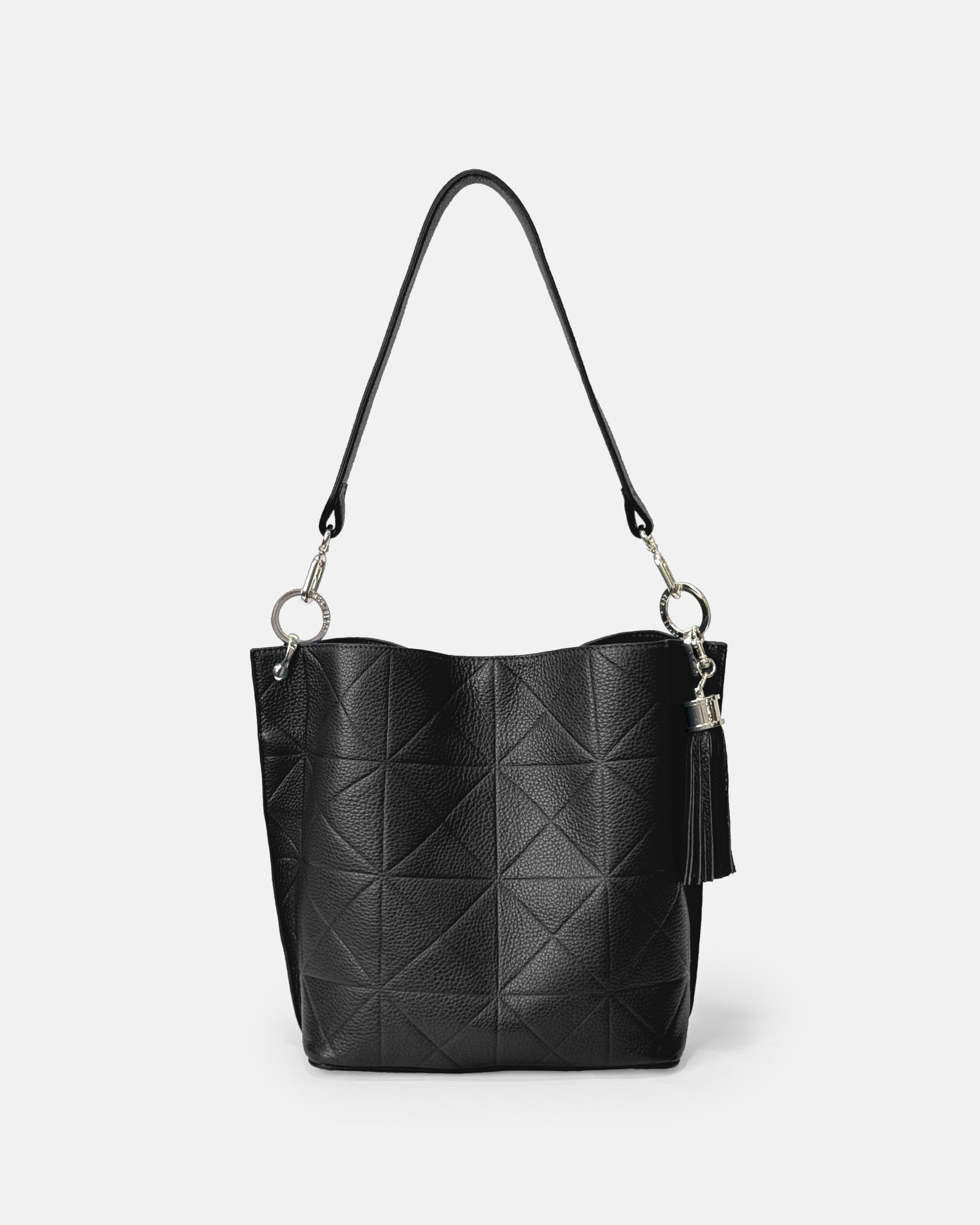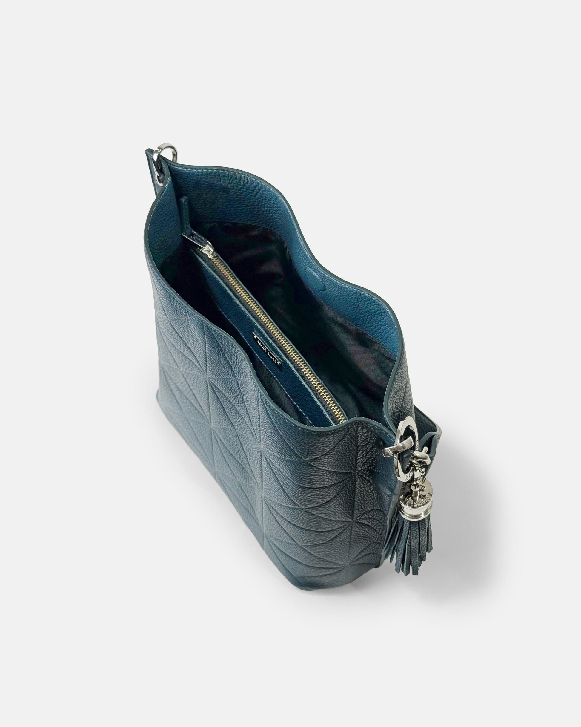 ショルダーベルトを繋ぐリングにはブランドロゴを刻印し、タッセルレザーもオリジナル仕様で、インポートバッグのような高級感を演出。
