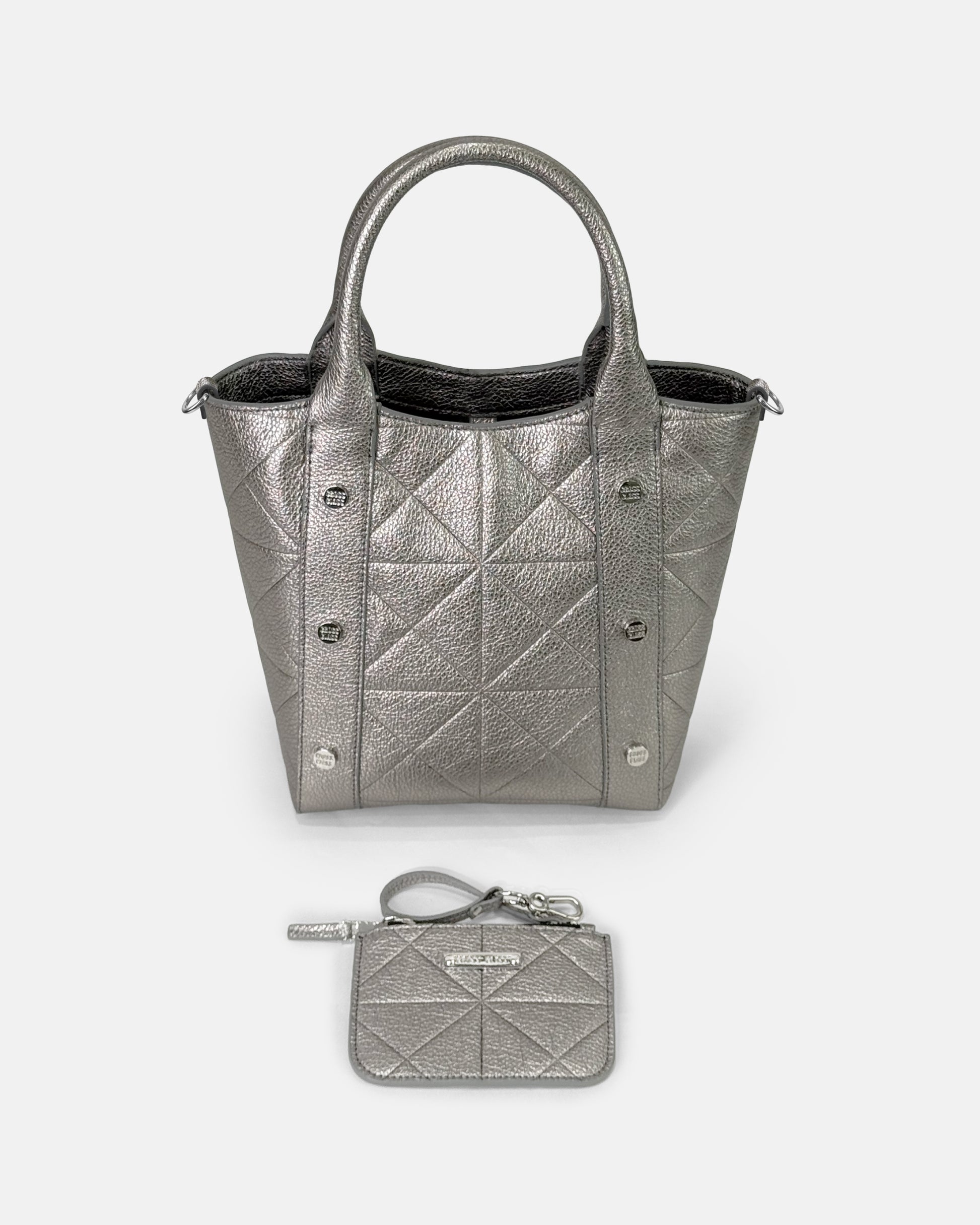 イタリア製レザーに、ブランドを象徴するオリジナルのクロス柄ネオエンボス加工を施したバッグ。
