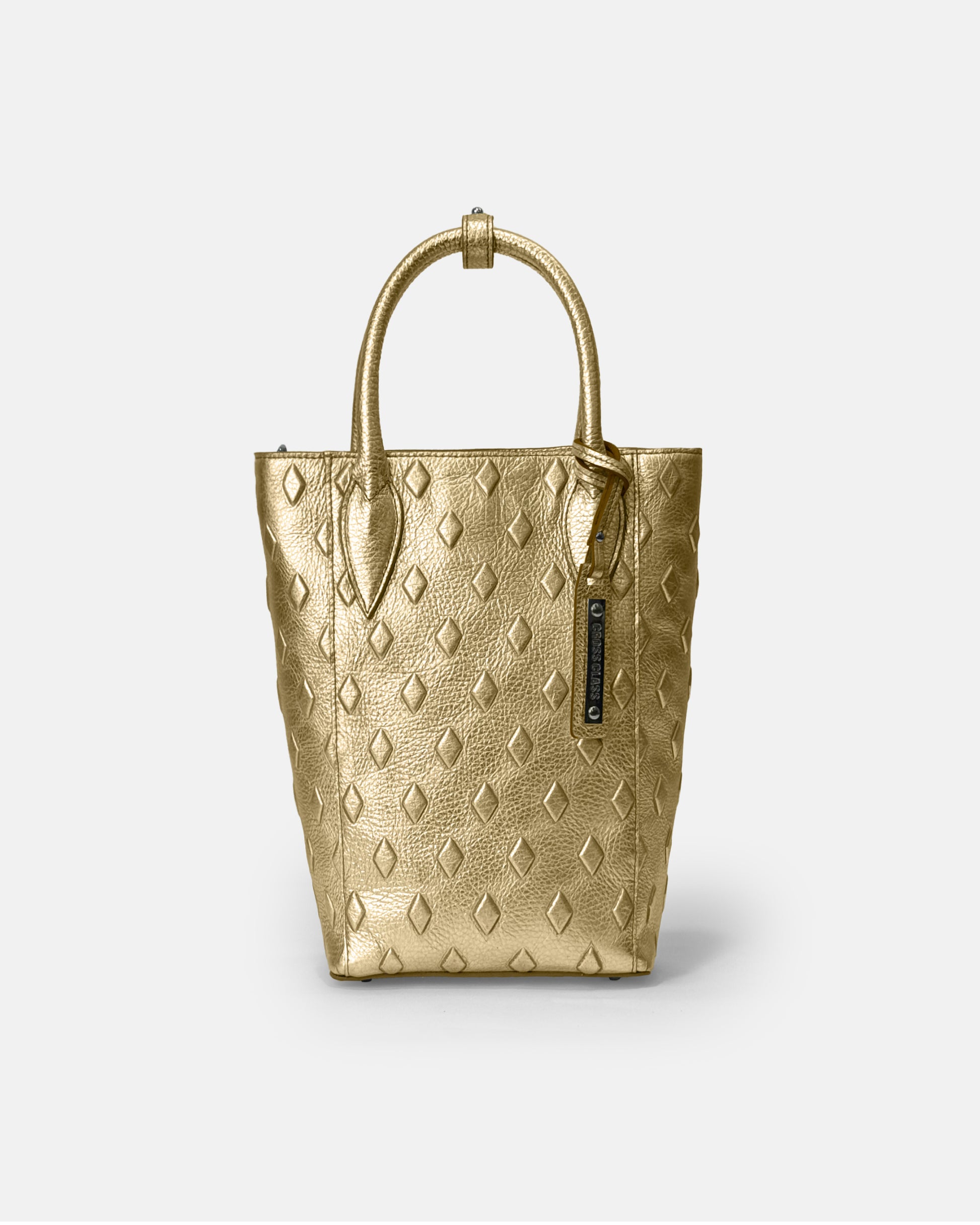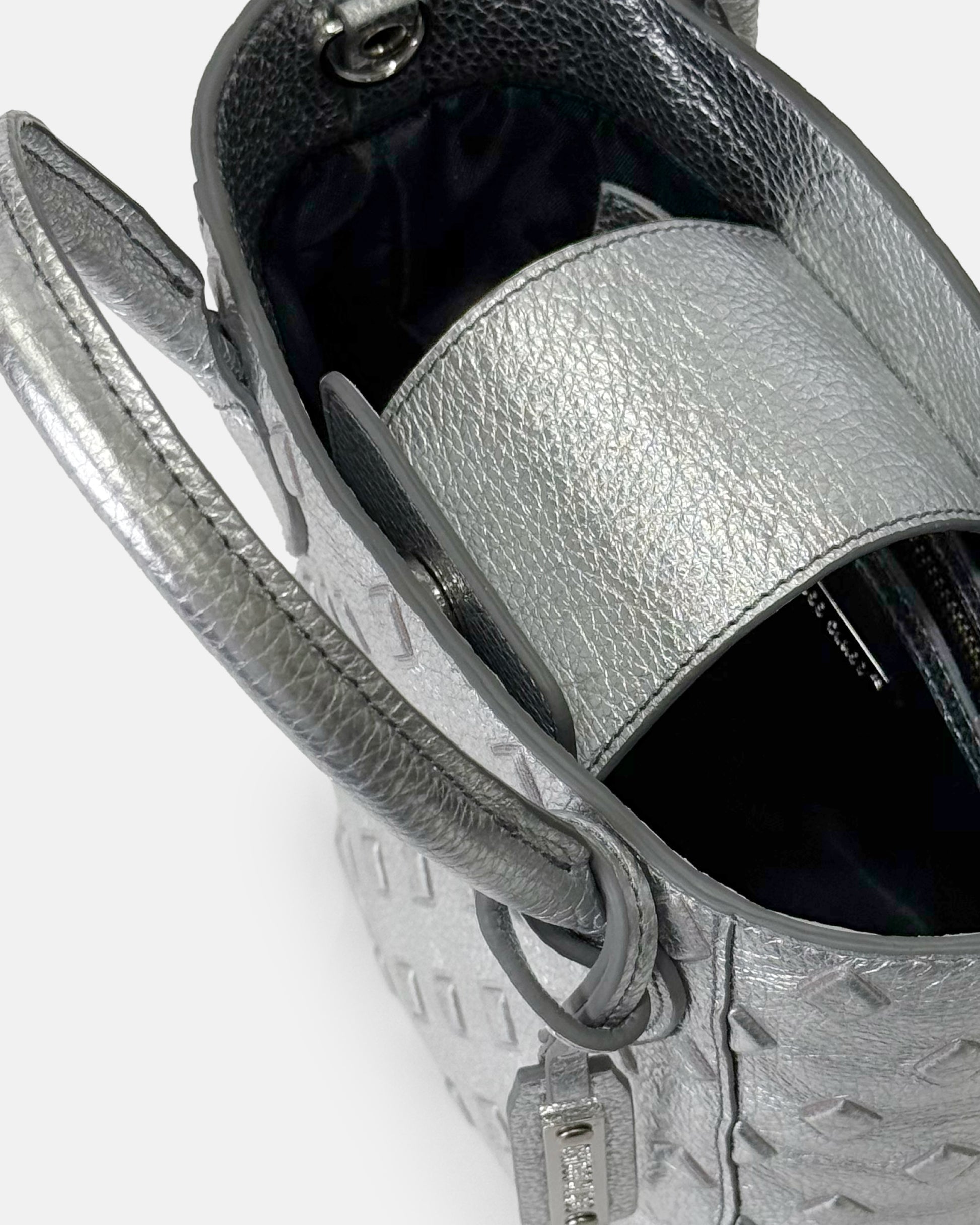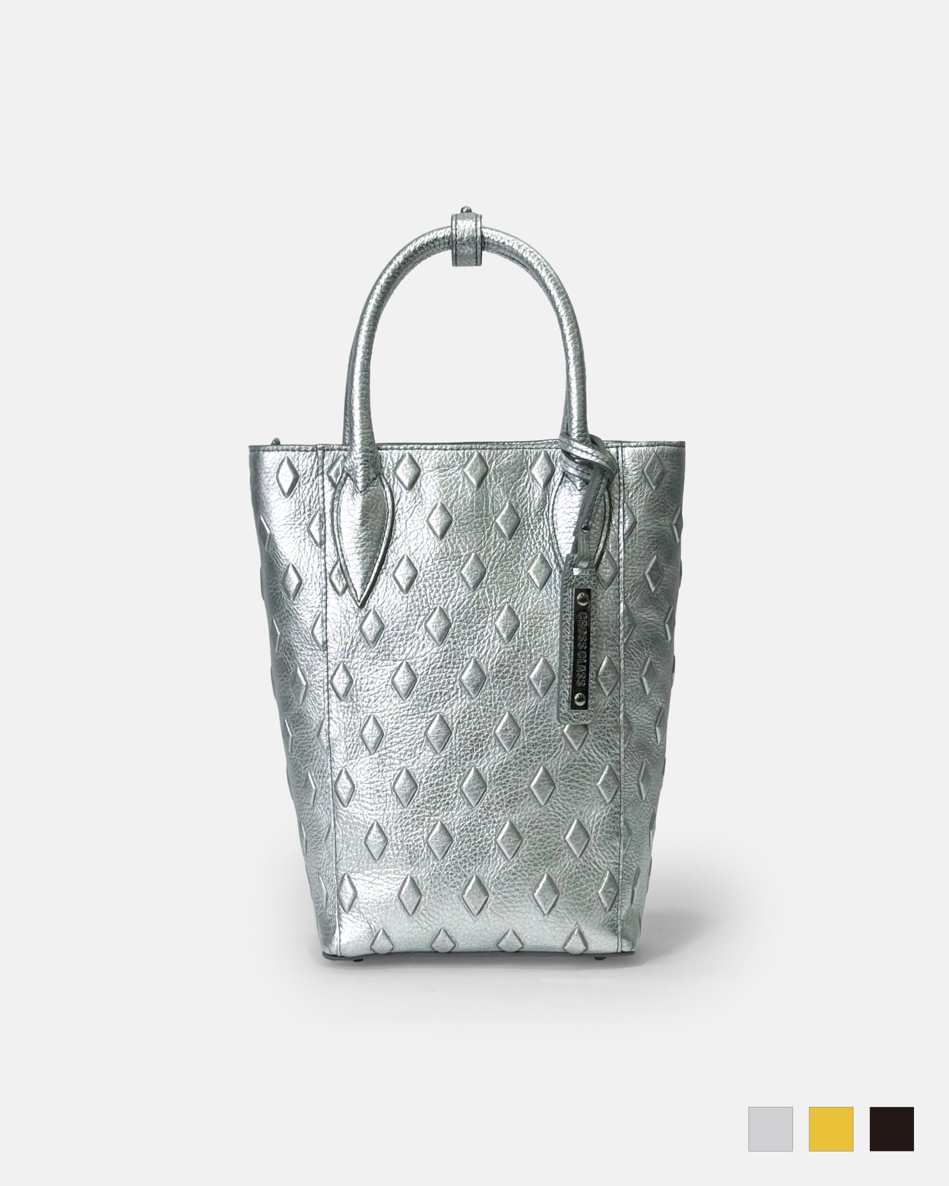 イタリア製のメタリックレザーを贅沢に使用し、ダイヤエンボス加工を施したオリジナルレザー。
