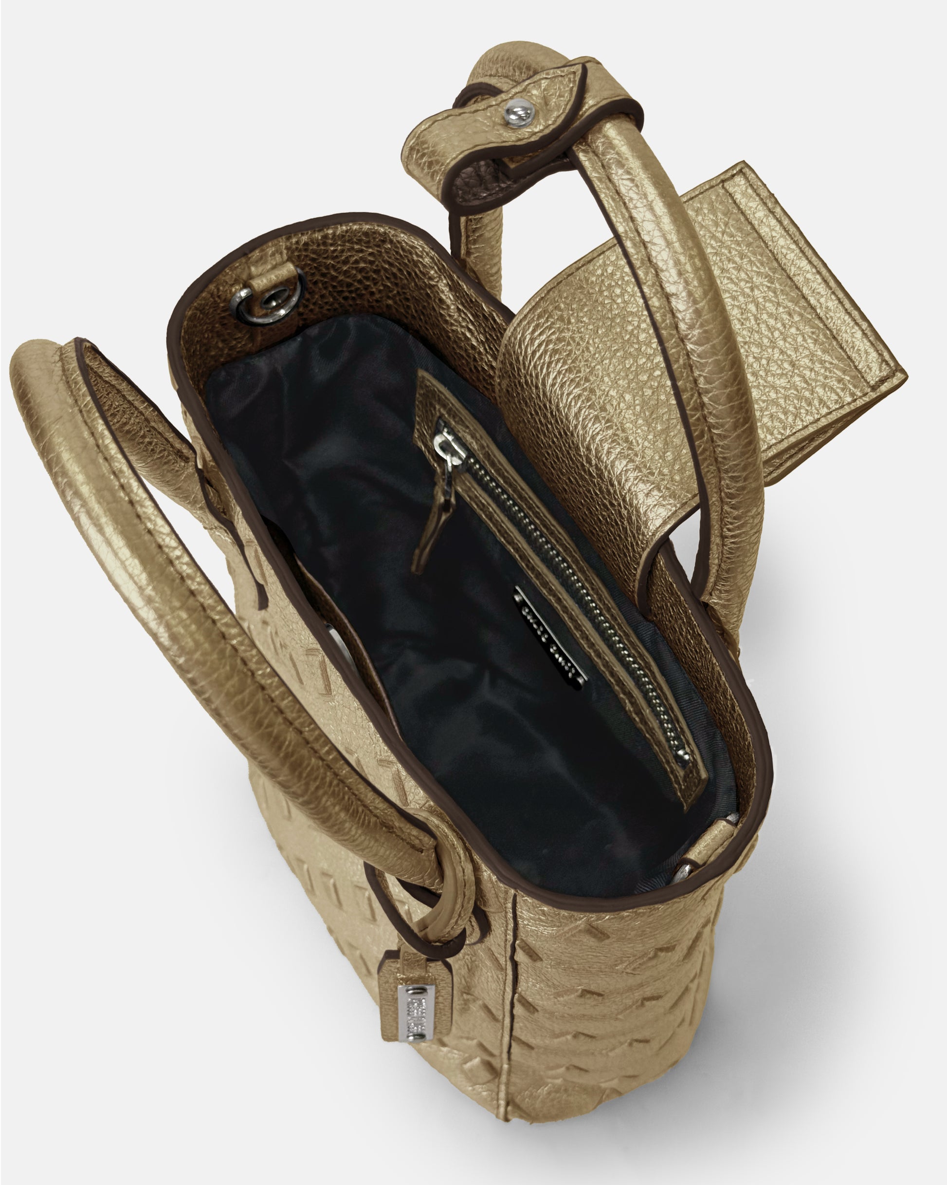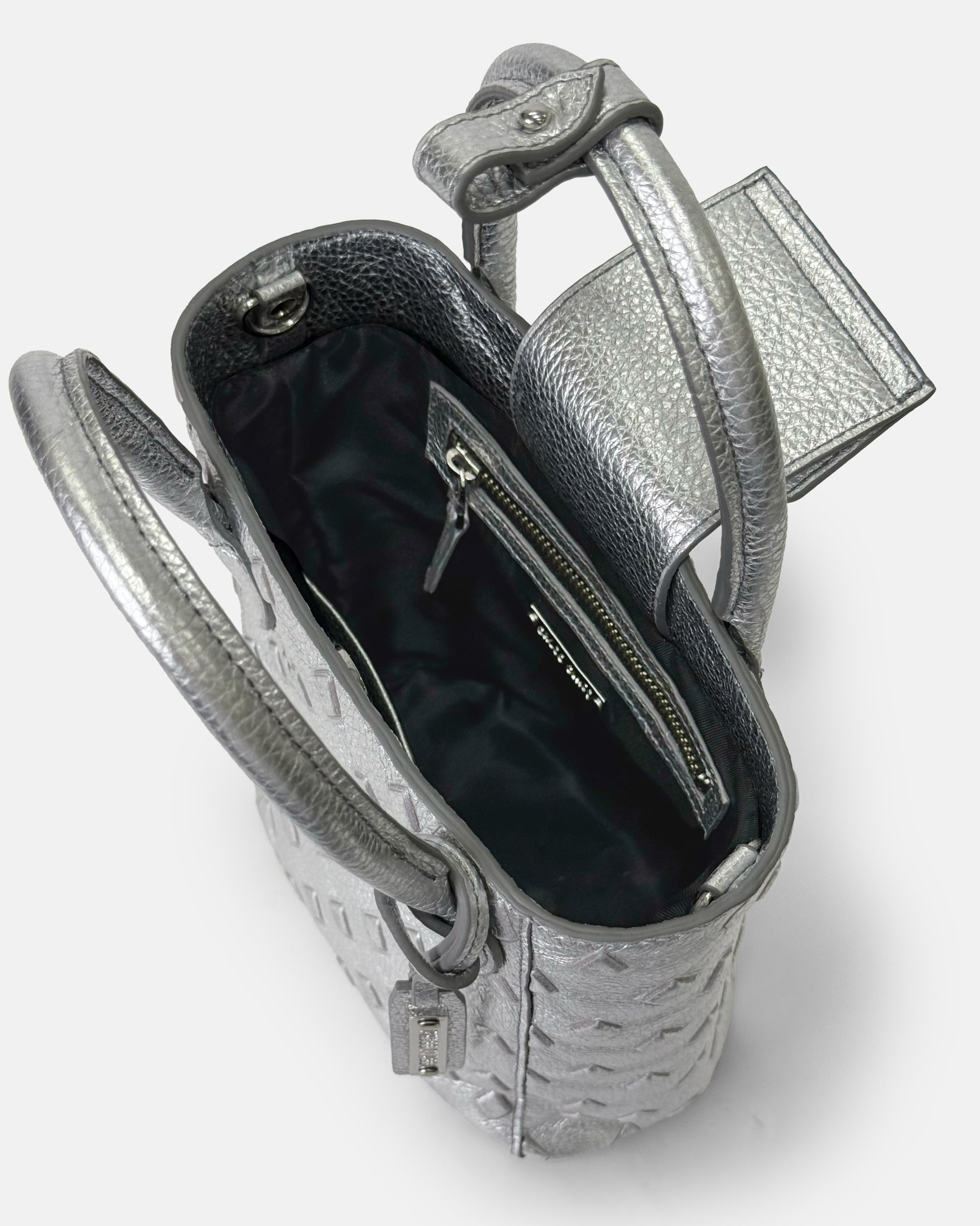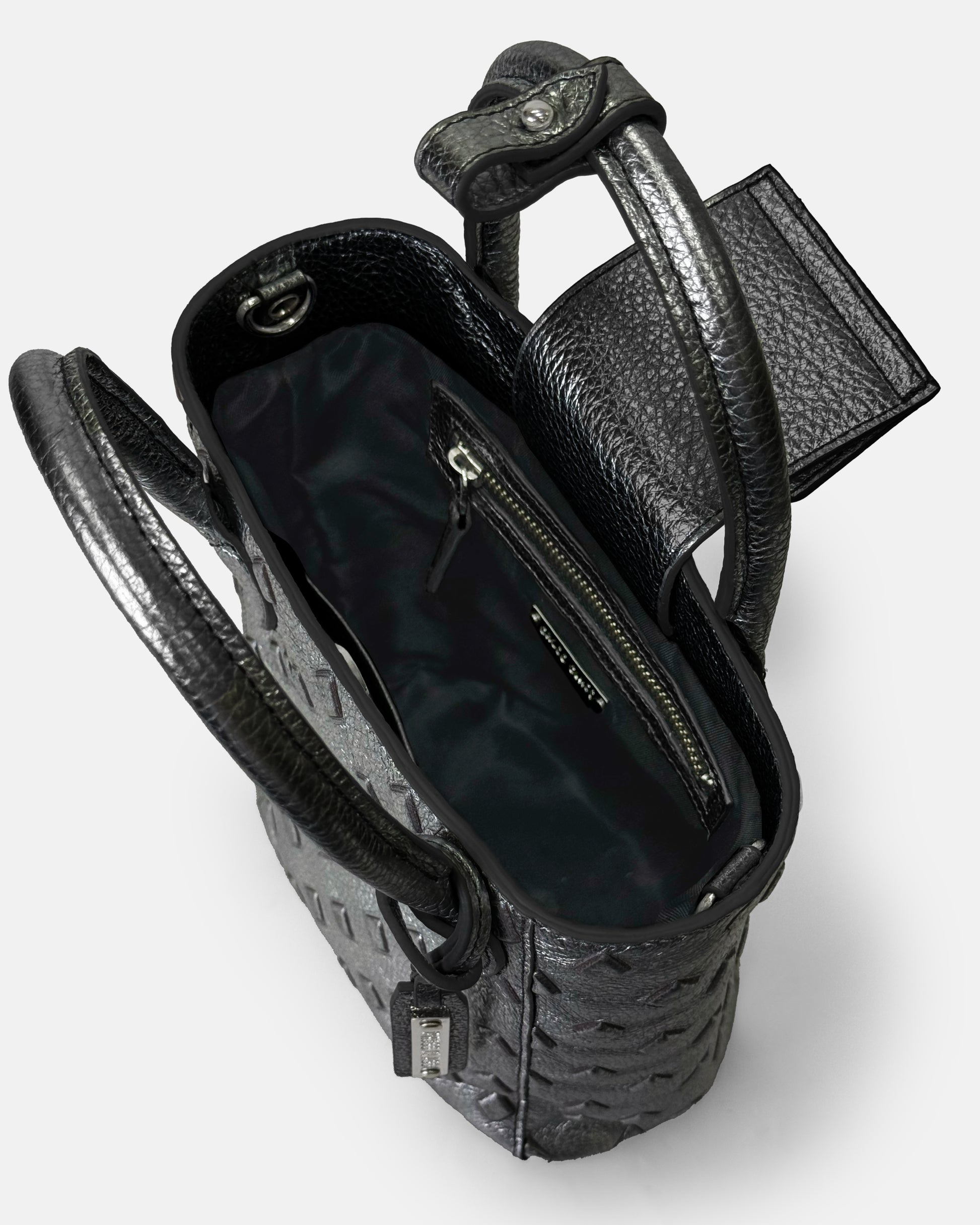 イタリア製のメタリックレザーを贅沢に使用し、ダイヤエンボス加工を施したオリジナルレザー。